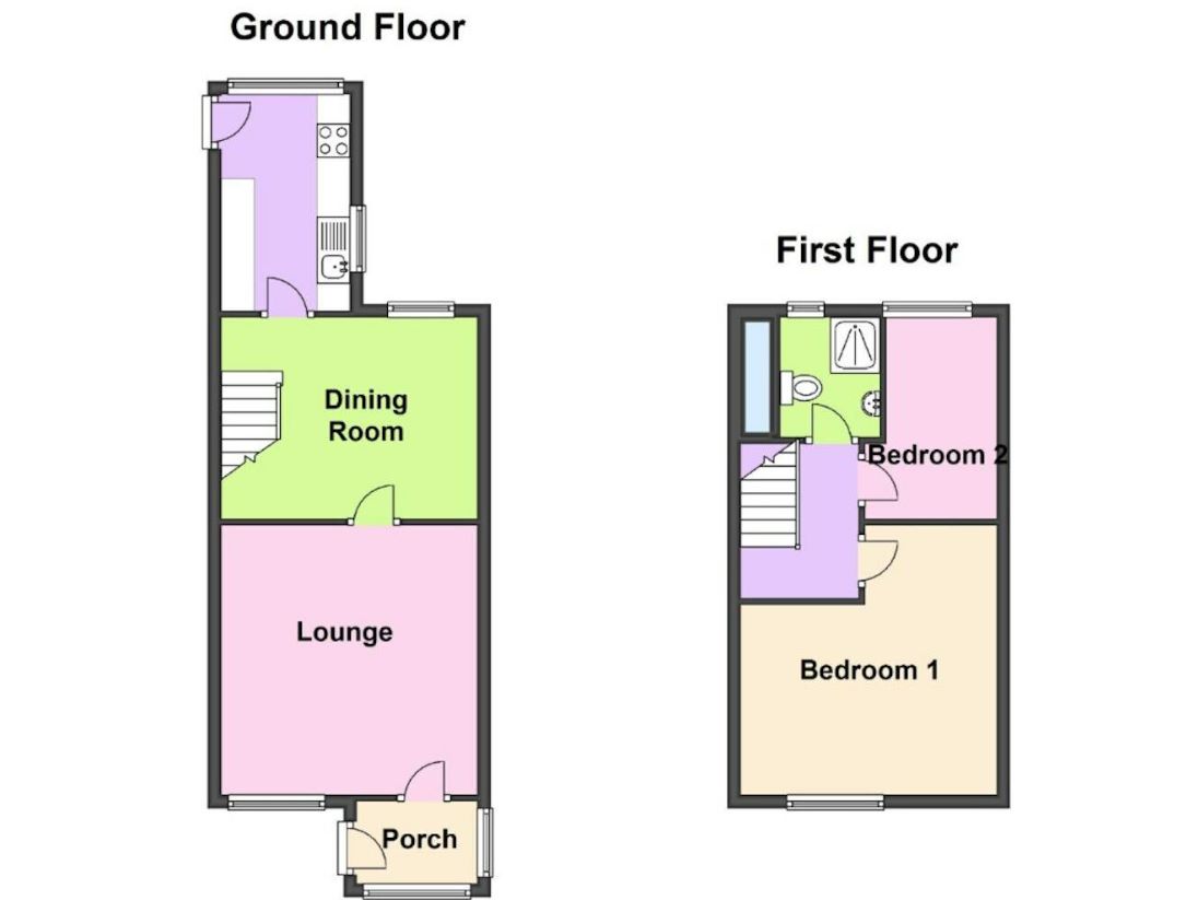 The first floor houses two well-proportioned bedrooms and a contemporary bathroom.