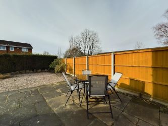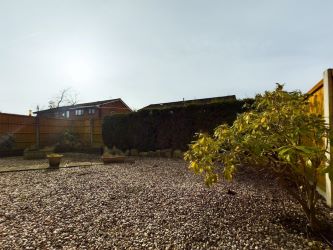 Externally, as the property is a corner plot the garden is substantial. It is currently set up with a patio area and stoned area for low maintenance, with an established shrub border edged with sleepers. There is plenty of space to convert to a lawned area to suit.