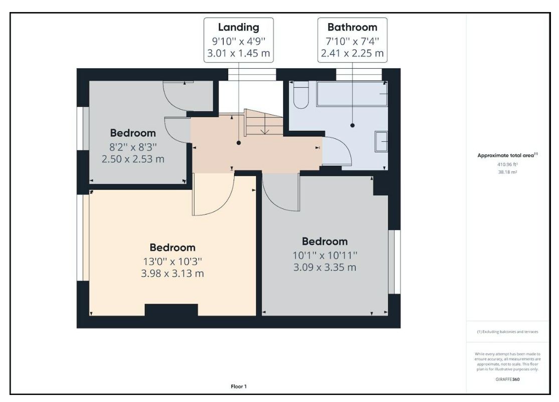 Upstairs, you will discover three spacious bedrooms, all designed to accommodate comfortable living. Each bedroom offers enough room for furnishings, storage, and personalization to suit individual preferences. The natural light that streams through the windows enhances the welcoming atmosphere of each room. A family bathroom completes the upper level, featuring a suite that includes a bath, sink, and toilet, providing a relaxing and functional space for daily routines.