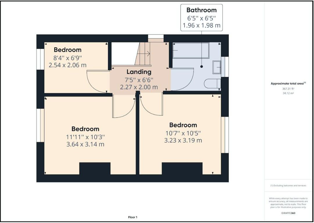 The first floor comes with two double bedrooms, a single bedroom, plus the family bathroom. The bathroom consists of a bath, toilet, and basin.