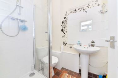 Shower Room With Wc - Having shower cubicle, pedestal wash basin and separate WC.