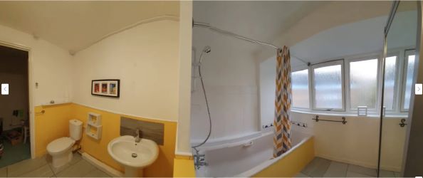 BATHROOM – comprising; panelled bath with overhead shower attachment, WC and wash hand basin. Tiled floor.