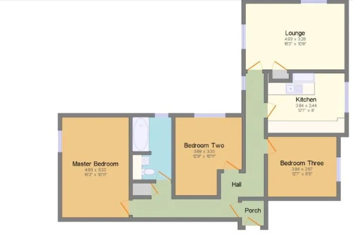At the end of the hallway is the MASTER BEDROOM - a large, light double bedroom overlooking communal entrance to the flats and car parking area.
