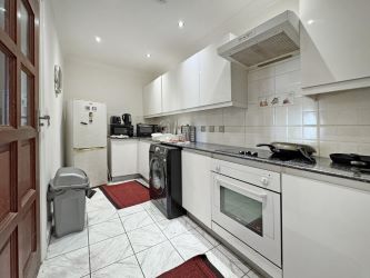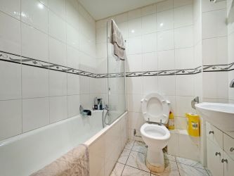 Directly opposite the main front door, you’ll find the bathroom with a modern white suite, inclusive of a fitted bath with chrome wall mounted shower and full height white gloss tiling throughout.