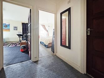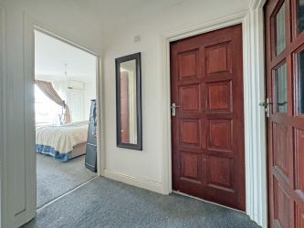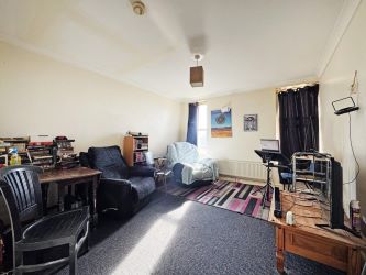 As you enter the flat, you're welcomed into a spacious square hallway, directly servicing all of the spaces. To the left, you'll discover a generously proportioned living room, with a grey carpet and two portrait windows to the front aspect.