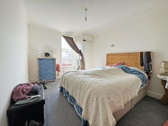 Adjacent to the living room you’ll discover a large double bedroom with a portrait window to the front aspect and a built-in storage cupboard.