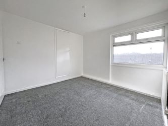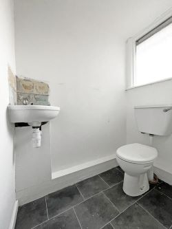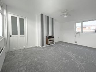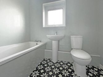 As you ascend the staircase you're welcomed onto the first floor landing, which directly services two large double bedrooms, one of which runs full aspect, and a well-proportioned family bathroom. Both double bedrooms are fitted with a modern grey carpet and white walls. The family bathroom is finished in a monochrome style with a modern white suite. The bathroom walls are fully clad in gloss PVC paneling throughout with a monochrome Victorian style vinyl floor.