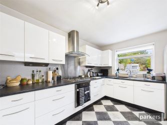 The property offers light and spacious accommodation comprising an entrance hallway, downstairs WC, living room, dining room, sunroom, and a well-appointed kitchen. Upstairs, there are three bedrooms and a family bathroom.