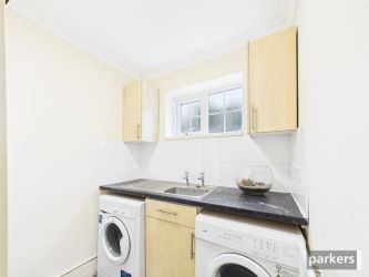 The accommodation is arranged over multiple levels and offers light-filled, flexible living space. The ground floor comprises an entrance hallway, a spacious open-plan lounge/diner, a utility room, and a cloakroom WC. The first floor features a bedroom, a family bathroom, and a separate shower room and a separate WC, while the second floor provides two further bedrooms. On the lower ground floor, there is a fitted kitchen along with an additional bedroom or reception room, ideal for guests, home working, or flexible family use.