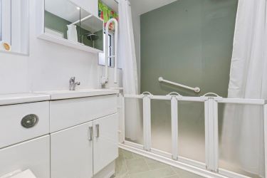 The bungalow showcases two generously sized bedrooms, offering a peaceful retreat at the end of a long day. The modern bathroom features a convenient walk-in shower, adding a touch of luxury to your daily routine.