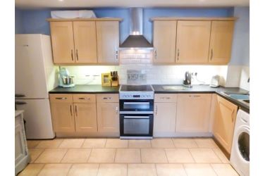 This fitted kitchen offers a range of wall and base units with complementary work surfaces over, 1.5 stainless steel sink and drainer with mixer tap, electric cooker, dishwasher and provision for a washing machine.