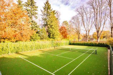 approximately 3 acres, having approximately 1 acre allocated as formal gardens and tennis court, and