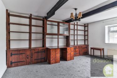 Dining Room - 3.85 x 4.75 (12'7" x 15'7") - Radiator, Upvc double glazed leaded effect window to front, beams to ceiling and exposed stone chimney breast. Built in cupboards, drawers, shelving and display cabinets.