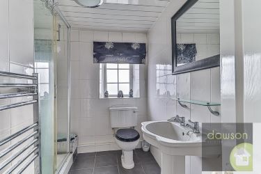 Shower Room - 2.05 max x 2.75 max (6'8" max x 9'0" max) - Three piece suite comprising low flush w.c. pedestal wash basin and shower cubicle with mains shower. Tiled floor, tiled walls and Upvc cladded ceiling. Chrome heated towel radiator and Upvc obscure double glazed leaded effect window to front.