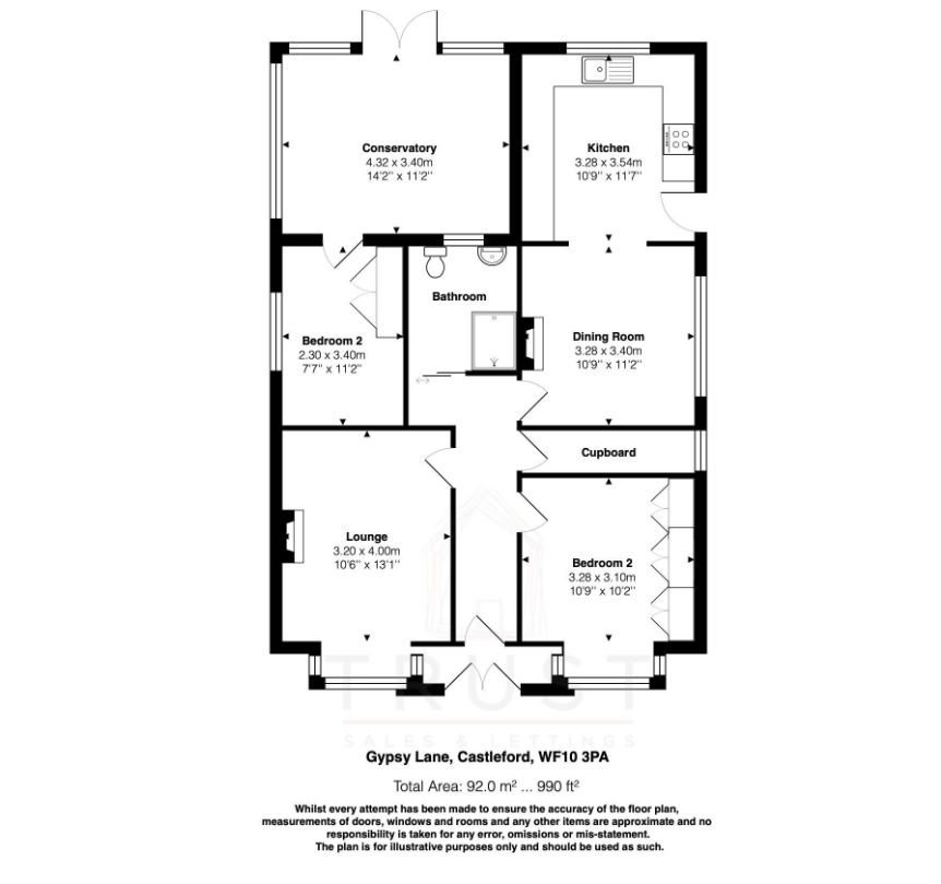 fitted wardrobes across one wall. Double glazed door leading to conservatory and a gas central heating radiator