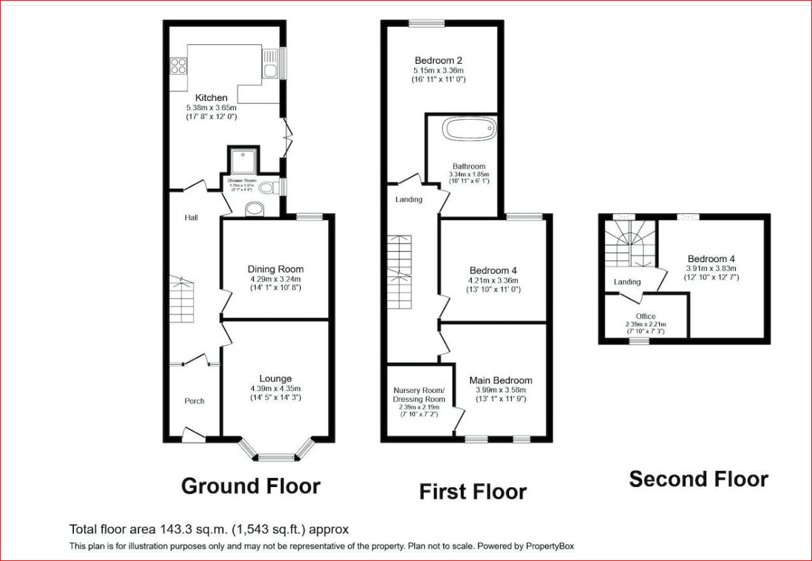 On the first floor are three large double bedrooms, each with plenty of storage space, the main bathroom, and a walk-in wardrobe/ nursery off the master bedroom. Up onto the second floor, you are met with a further spacious bedroom and single bedroom/office.