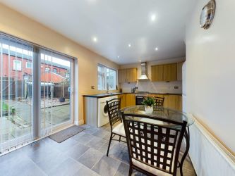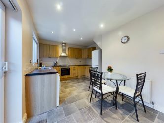 The spacious kitchen/dining room is to the rear downstairs, overlooking the garden, ideal in its position and complete with sliding patio doors.
