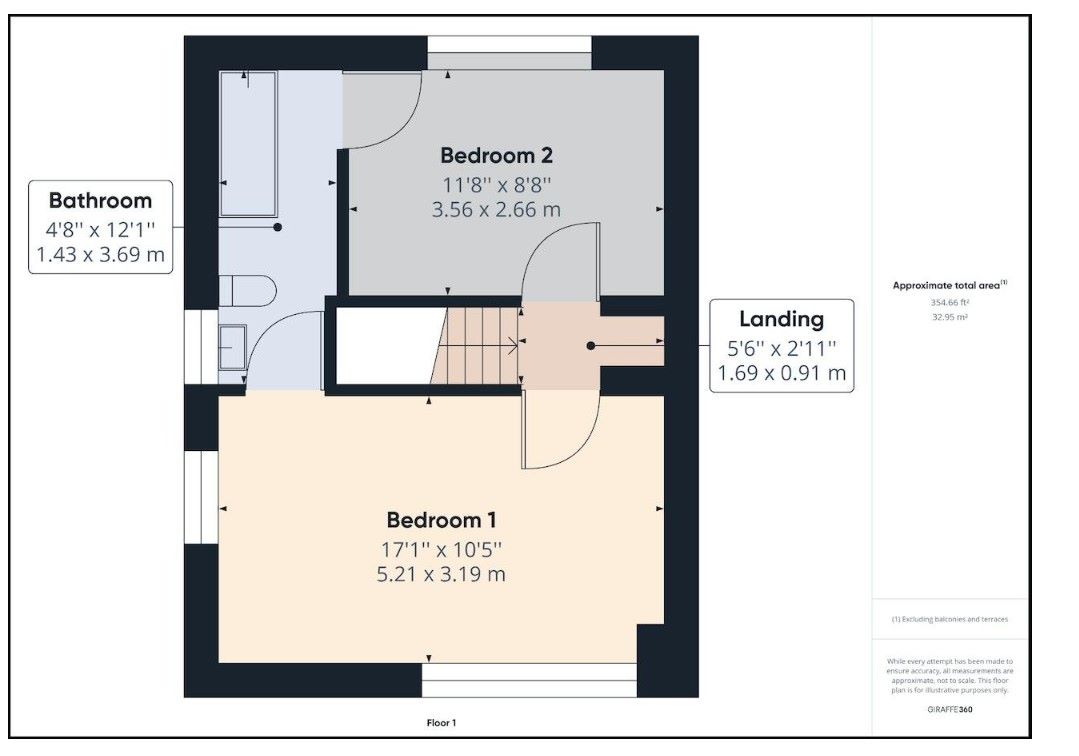 The main bathroom which has an entrance to both bedrooms is newly refurbished and fully tiled to a high standard with bath and overhead power shower.