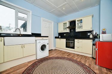 Kitchen has a butler sink, built-in oven and hob, space for washing machine, but could do with some Fixing/updating/some TLC/ redecorating.
