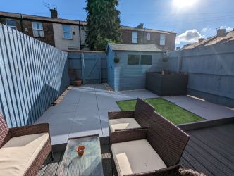 Accommodation comprises an entrance hallway, a light and spacious open-plan living kitchen, and a downstairs WC and utility room. The property is well presented throughout. The garden is of good size with half decking and half patio, perfect for alfresco dining in summer. On the first floor is two sizeable double bedrooms, one with a juliette balcony, and a modern bathroom. The property benefits from all double glazing.