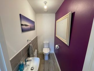 Internally this home offers a spacious lounge to the right with an array of windows creating a light and airy space. To the left, the kitchen/diner has intregrated applicances and conveniently offers access to the garden. The downstairs also benefits from a WC.